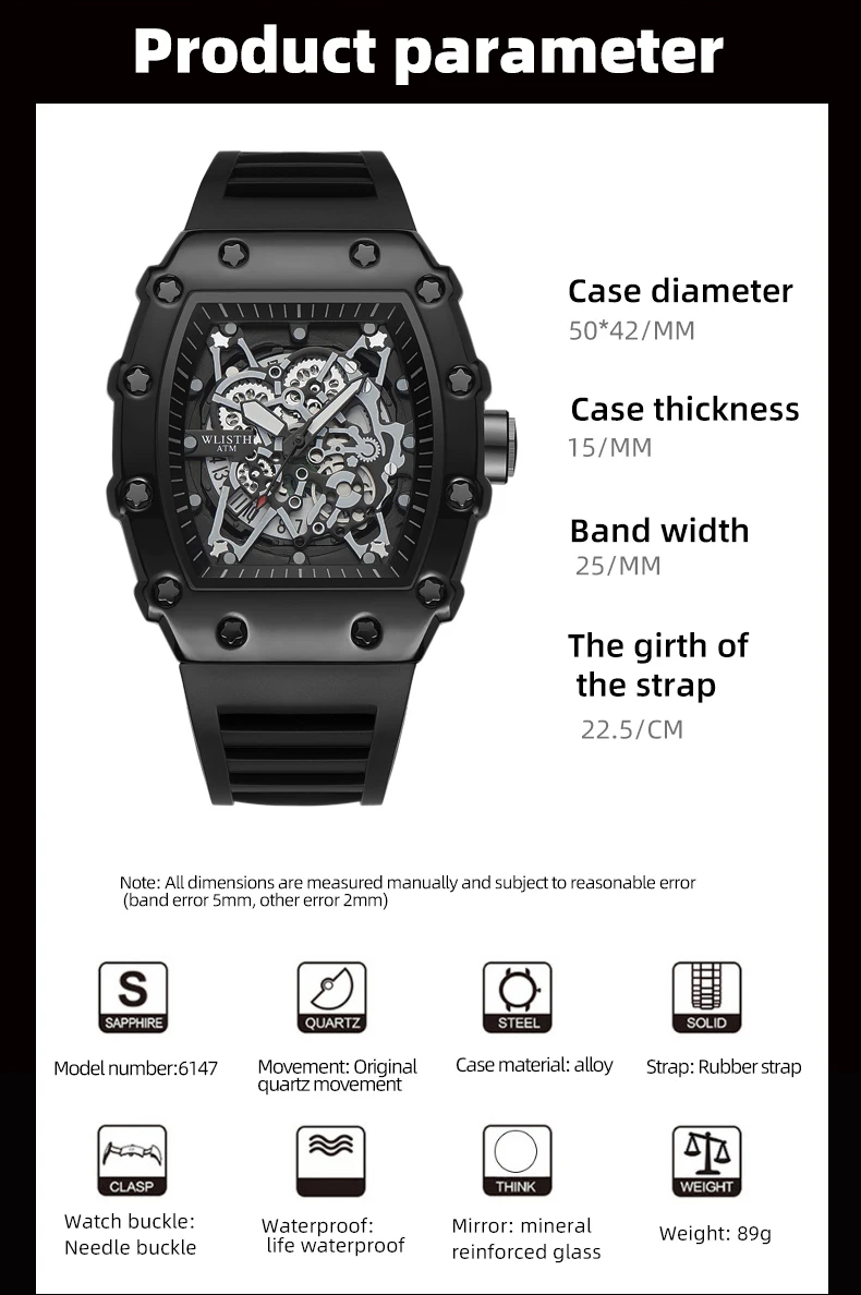 Foreign Trade Watch Large Dial For Men Quartz Waterproof Sport Square Luminous Watch For Men